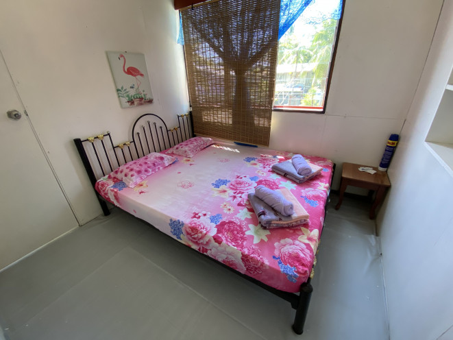 This Queen room can fit up to two adults and 1 child each. Every room comes with wall fans and windows. Access to the balcony and the beach.