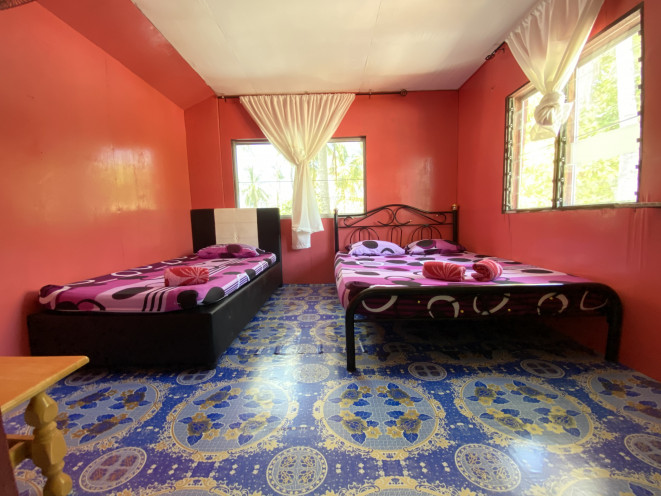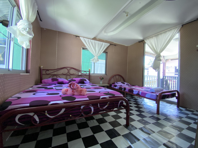 This Triple room can fit up to three adults and 1 child each. Every room comes with wall fans and windows. Access to the balcony and the beach.